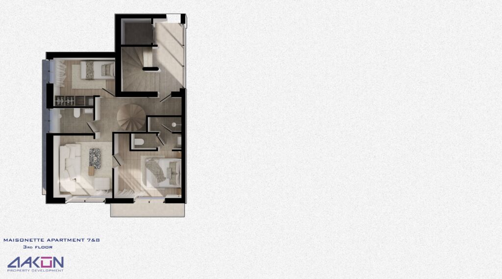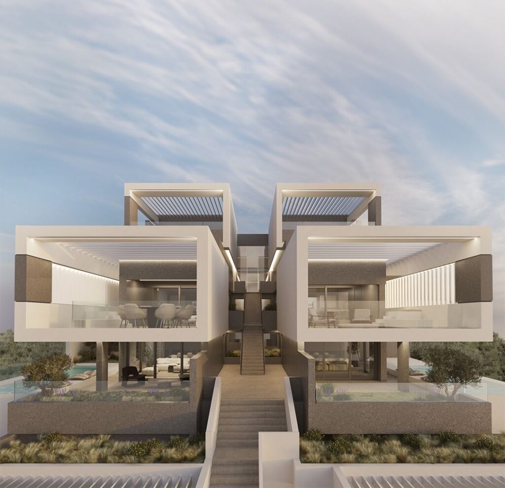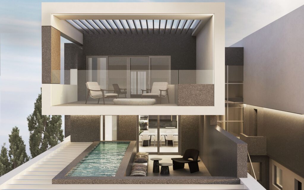 | Maisonette Apartment 7 | 134.8 sq.m. | 2nd & 3rd Floor | 3 bedrooms – 2 of which have private en-suite bathrooms – 1 additional bathroom, 1 guest W.C., kitchen, dining area, and living room. Also features spacious front and rear verandas totaling 70 sq.m., with a private 8 sq.m. swimming pool, as well as a private courtyard. |