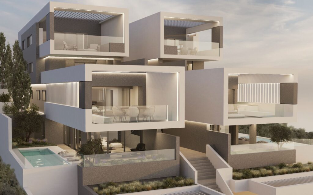 | Maisonette Apartment 8 | 134.8 sq.m. | 2nd & 3rd Floor | 3 bedrooms – 2 of which have private en-suite bathrooms – 1 additional bathroom, 1 guest W.C., kitchen, dining area, and living room. Also features spacious front and rear verandas totaling 70 sq.m., with a private 8 sq.m. swimming pool, as well as a private courtyard. |